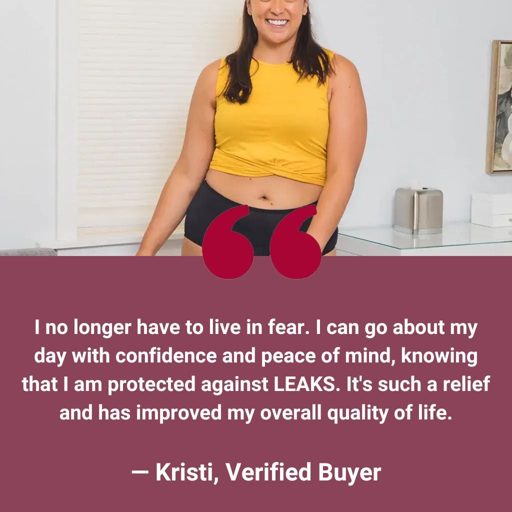 After finding this leak-proof underwear, I can now enjoy my daily activities in comfort and confidence. I no longer have to constantly worry about leaks and stains, and can just go about my day with ease. It's made such a positive impact on my life and has been truly transformative." @Lauren R.